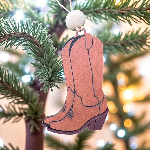 Give your holiday a fun yee-haw boost with these delightful western boot ornaments. Made from wood and pleather, each one features twine and a wooden bead and can be customized with any name you want. Just include your choice in the notes section!